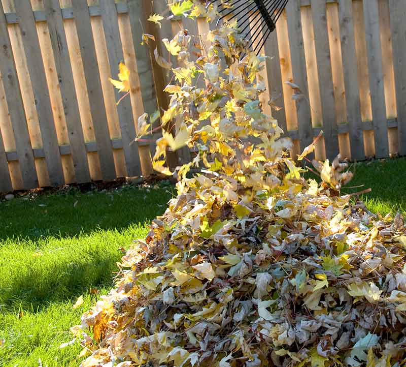 - Clean up leaves. Left untended, mats of fallen leaves suffocate lawn grasses and invite disease. Mow and mulch small quantities of leaves, but rake, bag or compost large quantities.