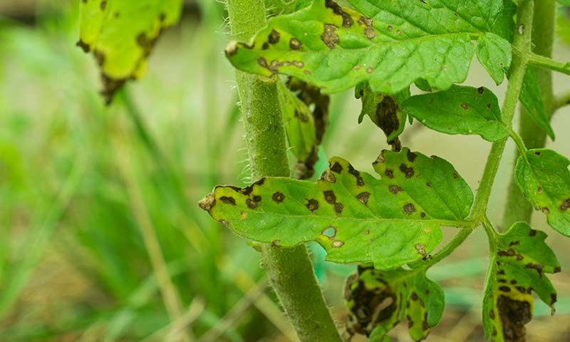 Dark spots on tomato leaves may signal infection from a fungal disease