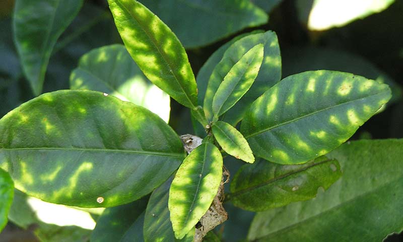 Some nutrient deficiencies cause yellow leaf spots and patches.