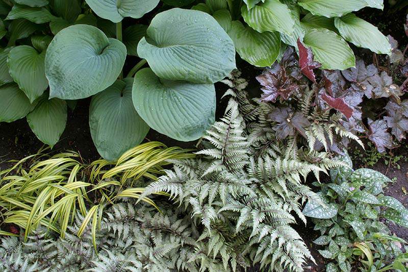Shapes, textures and foliage colors play important roles in shade gardens.