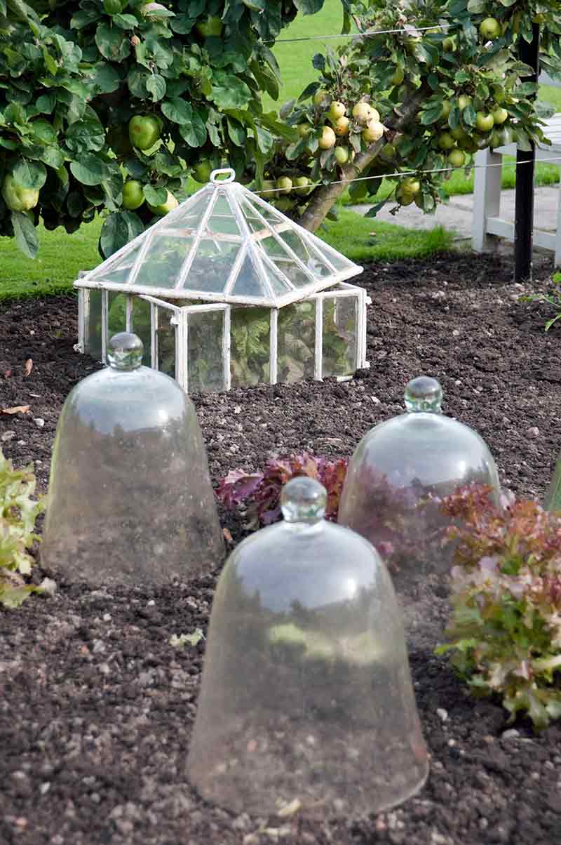 Some cool-season crops, including kale and collards, sweeten when nipped by frost, and root crops stay protected. Leave these veggies as long as they deliver table-worthy produce. Protect tender plants from early frosts with lightweight, blanket-like garden fabrics known as row covers, which allow light through, but protect against cold, wind and pests. A regular bed sheet, used to cover plants overnight when temperatures drop, can prolong harvests, too. Traditional protective coverings, such as transparent, bell-shaped cloches or low, clear-topped, insulating structures known as cold frames, extend the harvest even longer. These simple coverings mimic greenhouses by allowing plants access to light, while creating protective, warm environments.
