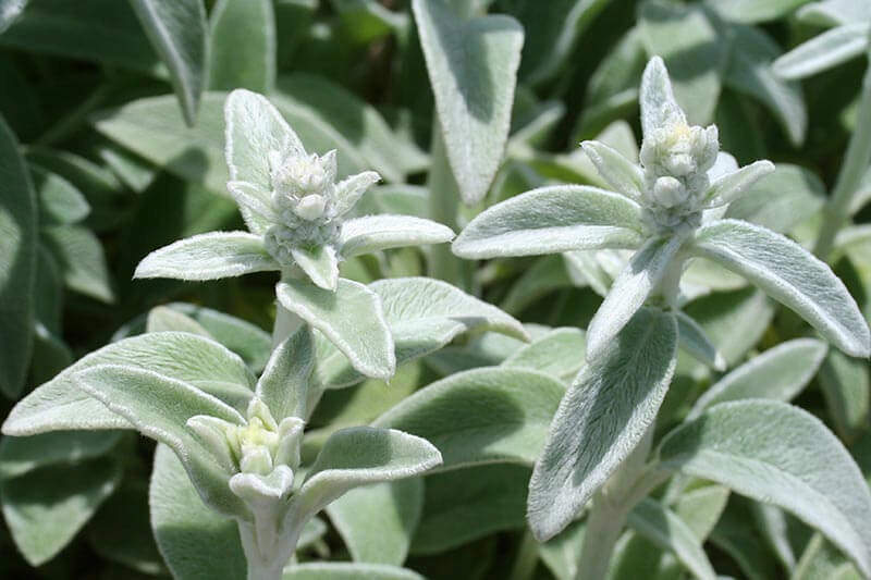 - Lamb's ears (Stachys byzantina) are irresistibly touchable day or night, but their velvety soft, silvery leaves glimmer under the moon. Used as edging or shimmery groundcovers at the base of other plants, these hardy perennials create cool pools of reflected moonlight. Some varieties add blooms as well.