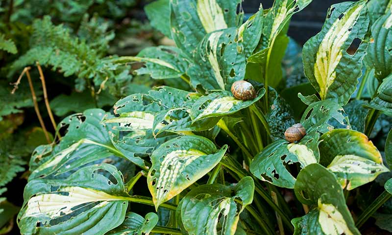 Slugs and snails belong to a class of animals known as "gastropods." Roughly translated, that scientific name means "stomach-foot." If these voracious pests hit your garden, you understand the name suits them well. If you find holes in leaves but no bugs, visit your garden with a flashlight at night. That's when slugs and snails do their dirty work.